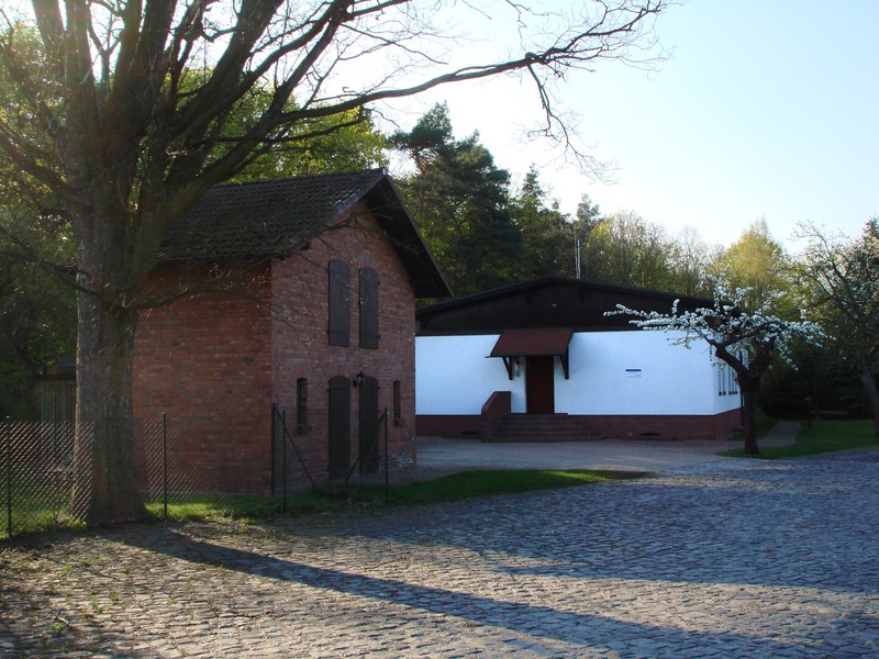 Vom ehemaligen Bahnhof Proschim-Haidemühl ist anscheinend dieser Rest hier übriggeblieben, der heute Vattenfall gehört und sich „Forsthaus Proschim“ nennt: