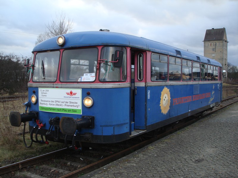 Bereits seit einigen Jahren nicht mehr im Planeinsatz vertreten, war der Grund für diesen letzten Einsatz des T12 sein bevorstehender Fristablauf am 14.01.2008. Der T12 pendelte zwischen Pritzwalk und Plau am See, wobei der Abschnitt zwischen Pritzwalk und Meyenburg als Planverkehr sowie der zwischen Meyenburg und Plau als Sonderzug galt. Es hatten sich natürlich auch einige Eisenbahnfreunde sowohl im Zug als auch entlang der Strecke eingefunden, doch insgesamt hielt sich das Interesse in Grenzen.