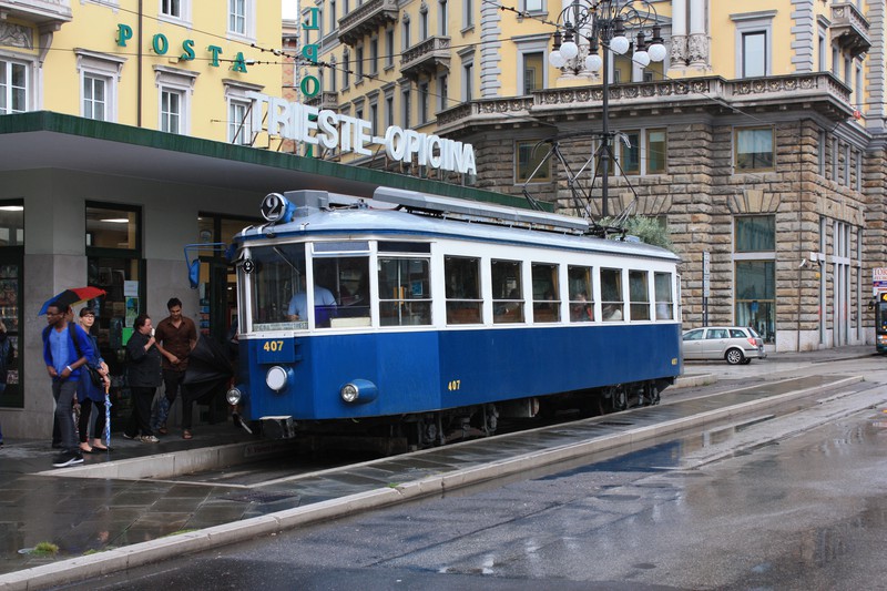 Auf dem Weg in den Urlaub an der sehr geliebten dalmatinischen Adriaküste stand Ende August 2014 eine Übernachtung im slowenischen Portorož (italienisch Portorose) an. Diese nutzten wir zu einem Tagesausflug in's nahegelegene Triest, um dort vor allem die berühmte meterspurige Lokalbahn nach Opicina (slowenisch Opčina) zu besuchen.