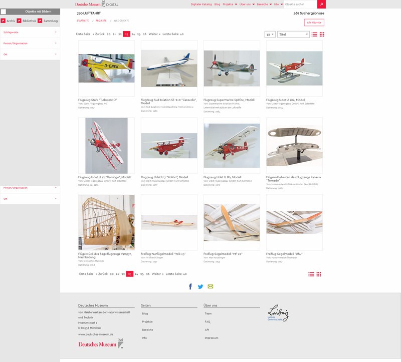 Am 06.03.2019 habe ich zusammen mit Aleksandar Stajić mein bisher größtes und ambitioniertestes Webprojekt als „Relaunch“ erfolgreich neu veröffentlicht: Das Portal „Deutsches Museum Digital“. Dieses Portal präsentiert Objekte aus der Sammlung, der Bibliothek und dem Archiv des Deutschen Museums unter einer gemeinsamen Oberfläche.